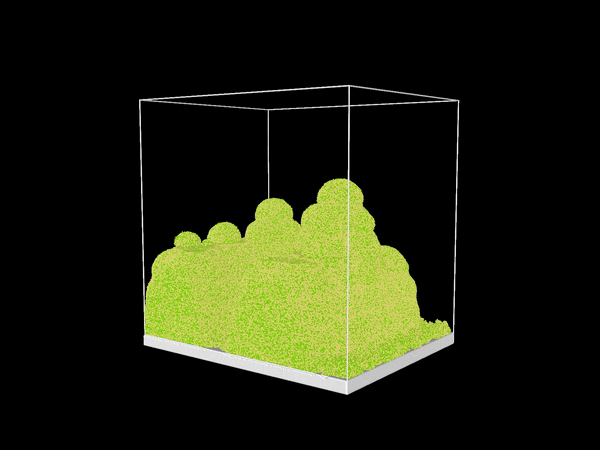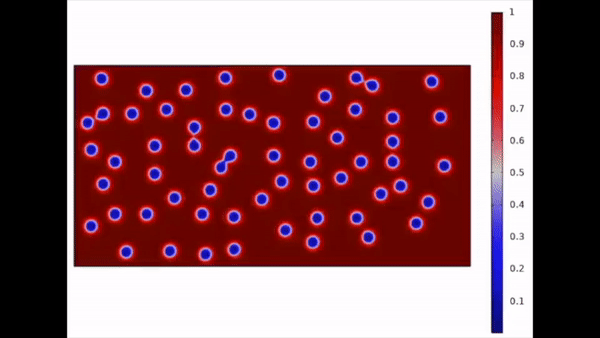 Discrete element simulation of bacteria cluster flow on adhesive substrate. |