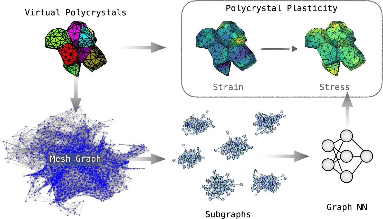 Stress predictions in polycrystal plasticity using graph neural networks with subgraph training. Computational Mechanics (2025). [Cite]